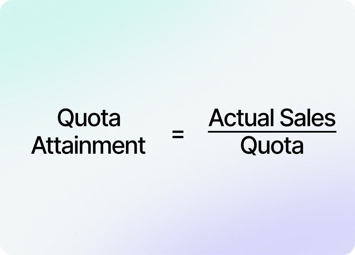 To calculate quota attainment, divide actual sales by the quota.